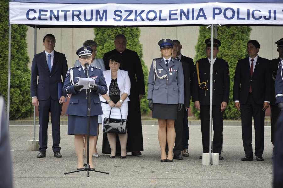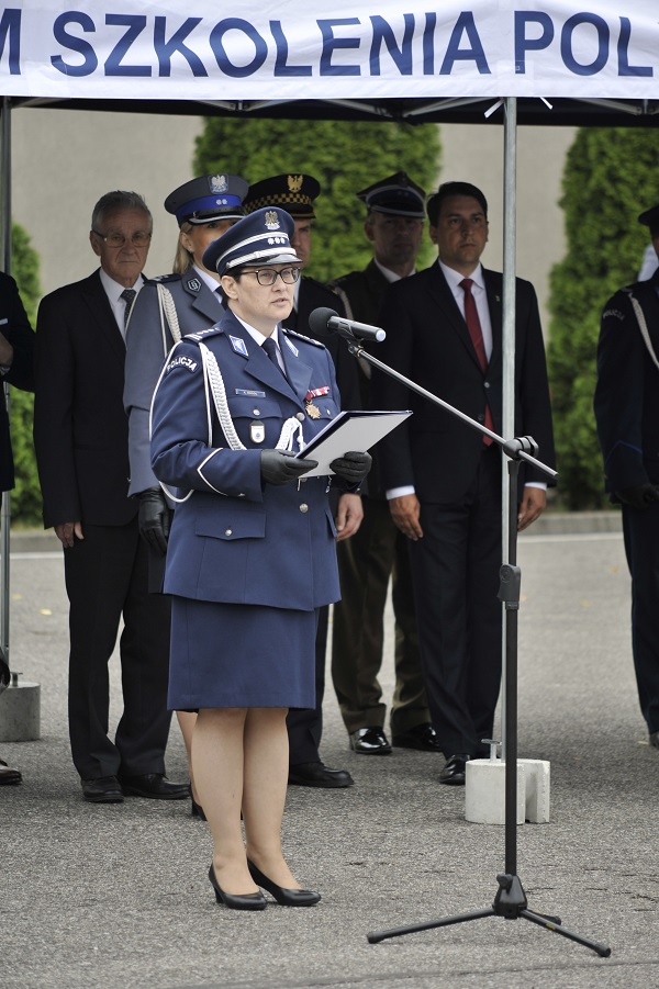 Insp. Anna Rosół – Komendant Centrum Szkolenia Policji nawiązała w swoim wystąpieniu do historii Policji Państwowej. Podkreśliła, jak ważnym krokiem w procesie unifikacji służby bezpieczeństwa w Polsce było uchwalenie przez Sejm Ustawodawczy odrodzonej Rzeczypospolitej Polskiej, dnia 24 lipca 1919 r. ustawy powołującej Policję Państwową. Poruszyła kwestie związane z realizacją procesu dydaktycznego oraz działalnością pozadydaktyczną. Podkreśliła rozwój infrastruktury szkoły, do którego dochodzi dzięki dużemu zaangażowaniu kadry pionu logistycznego. Wyraziła słowa uznania dla nauczycieli policyjnych oraz wszystkich osób włączających się w akcje profilaktyczne oraz honorowego krwiodawstwa. Komendant CSP insp. Anna Rosół pogratulowała awansowanym i wyróżnionym z okazji Święta Policji, przekazała wszystkim serdeczne życzenia, które skierowała również do bliskich funkcjonariuszy i pracowników szkoły.