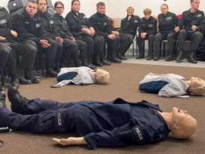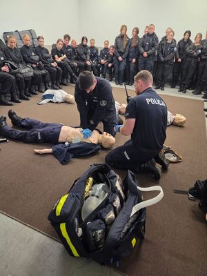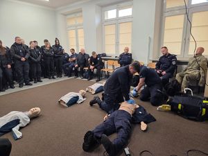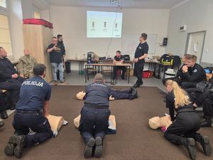 W czasie wizyty młodzież miała również możliwość poznania specjalistycznej pracowni Zakładu Szkoleń Specjalnych, gdzie specjalnie dla nich odbył się pokaz pierwszej pomocy przedmedycznej w wykonaniu ratownika medycznego Mariusza Paderewskiego.