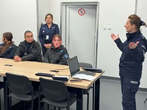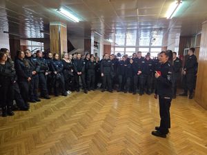 Przygotowaliśmy dla uczniów bogaty i różnorodny program wizyty. Dzień zaczęliśmy od powitania oraz zaprezentowaliśmy film o naszej szkole. Uczniom z okazji jubileuszu 100-lecia kobiet w Policji przypadającego w 2025 roku, st. asp. Marta Musiał oraz mł. asp. Agnieszka Malmon przedstawiły sylwetkę Stanisławy Filipiny Paleolog – I Komendant Policji Kobiecej w Polsce, nawiązując również do wybranych wątków historii polskiej Policji.