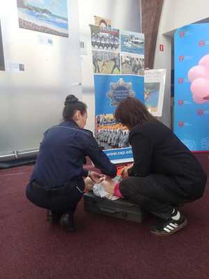 Nadkom. Beata Krzemień policjantka z Zakładu Szkoleń Specjalnych prezentowała zasady udzielania pierwszej pomocy przedmedycznej pokazując, jak prawidłowo reagować w sytuacjach zagrożenia życia i zdrowia. Z kolei podkom. Marek Maliszewski – funkcjonariusz z Zakladu Kryminalnego odpowiadał na pytania z problematyki uzależnień zwracajac uwagę na ich zgubny wpływ na zdrowie, bezpieczeństwo i ralacje społeczne.