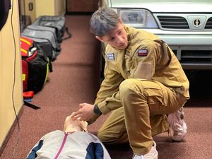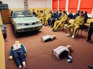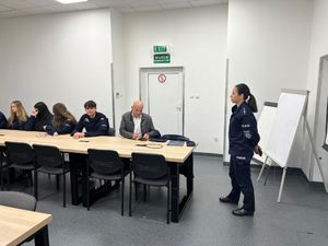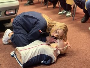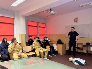 W czasie wizyty młodzież miała możliwość poznania specjalistycznej pracowni Zakładu Szkoleń Specjalnych, gdzie specjalnie dla nich odbył się pokaz pierwszej pomocy przedmedycznej w wykonaniu ratownika medycznego Mariusza Padarewskiego.