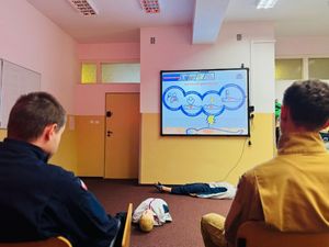 Przygotowaliśmy dla uczniów bogaty i różnorodny program wizyty. Dzień zaczęliśmy od powitania oraz zaprezentowaliśmy film o naszej szkole.