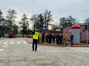 Podkom. Marcin Gąsior z Zakładu Ruchu Drogowego naszej szkoły przeprowadził pokaz kierowania ruchem drogowym w sali luster oraz na skrzyżowaniu znajdującym się na terenie naszego Centrum, które odzwierciedla warunki rzeczywiste na drodze.