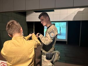 Asp. Robert Matusik również z Zakładu Interwencji Policyjnych zapoznał uczniów z nowoczesnymi obiektami zespołu strzelnic oraz wprowadził w tajniki wyszkolenia strzeleckiego.
