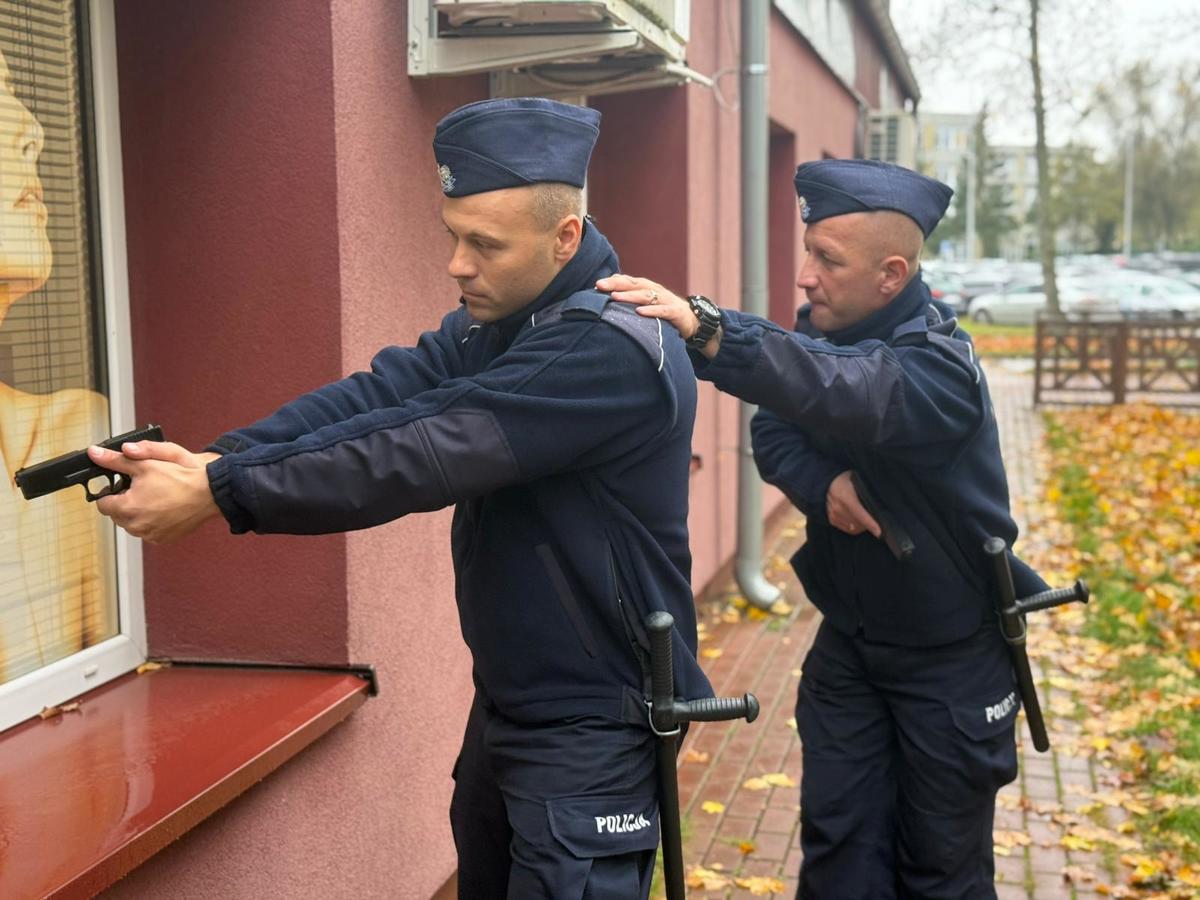 Słuchacze, zachowując zimną krew, zgodnie z obowiązującymi procedurami wyciągnęli broń służbową i wdrożyli czynności poprzedzające jej użycie. Dzięki właściwej ocenie sytuacji oraz zdecydowanemu działaniu, funkcjonariusze skutecznie obezwładnili napastników, zabezpieczyli miejsce zdarzenia i utrzymali kontrolę do czasu przybycia wsparcia.