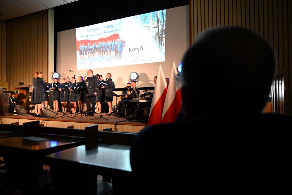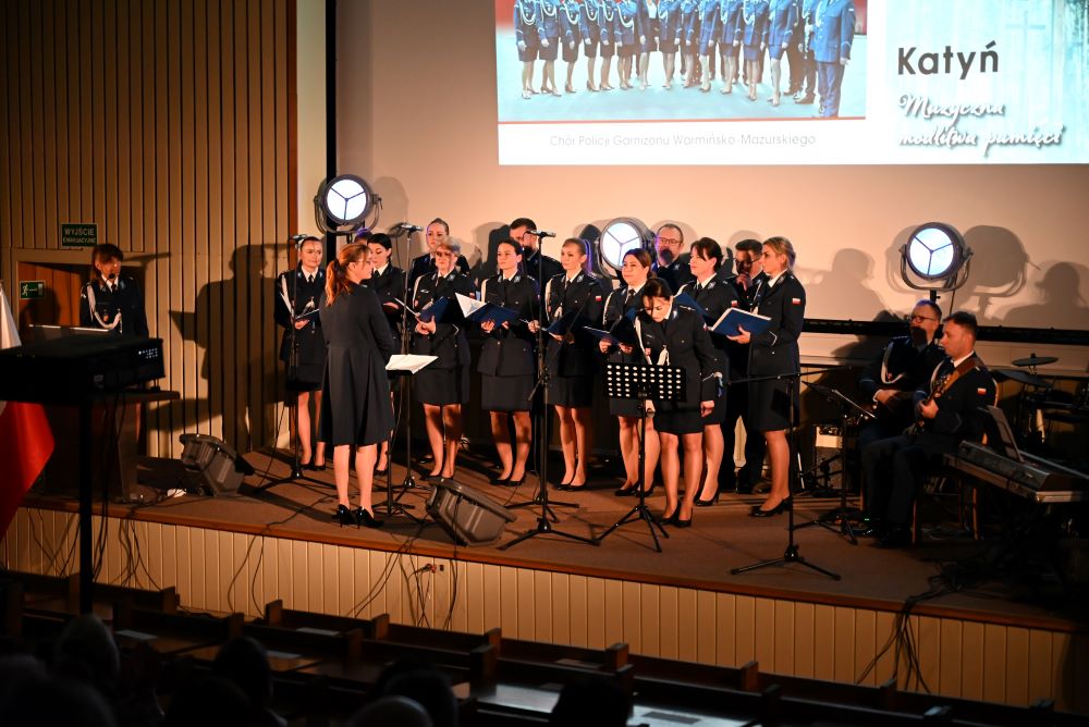 Chór Policji Garnizonu Warmińsko-Mazurskiego uświetnił spotkanie niezwykłym koncertem pieśni patriotycznych. W skład Chóru wchodzą czynni funkcjonariusze Policji – artyści w mundurach, którzy na co dzień strzegą porządku publicznego, a po służbie odnajdują wspólny język w muzyce. Od blisko 10 lat tworzą jedyny w Polsce Chór, w którym śpiewają czynni funkcjonariusze Policji.