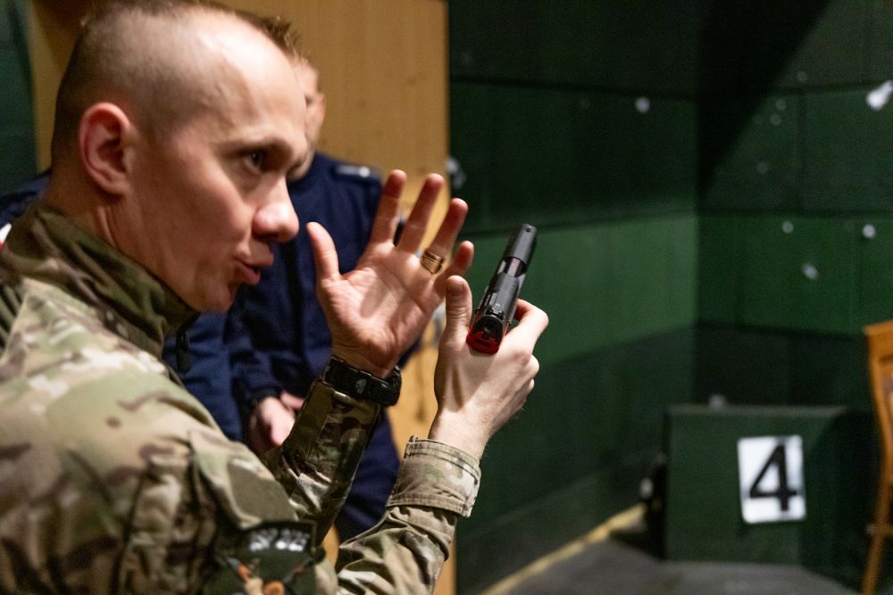 Nie zabrakło również ćwiczeń praktycznych. Pod okiem doświadczonych instruktorów strzelań policyjnych Zakładu Interwencji Policyjnych Centrum Szkolenia Policji w Legionowie, tj.: podinsp. Piotra Tarnowskiego, nadkom. Jakuba Koniecznego, kom. Alberta Piórkowskiego, asp. szt. Karola Piechowskiego, asp. Roberta Czyżewskiego oraz mł. asp. Piotra Radzikowskiego przeprowadzono zajęcia podnoszące umiejętności realizacji strzelań szybkich oraz zwiększające precyzję strzału.