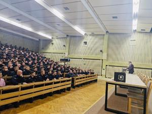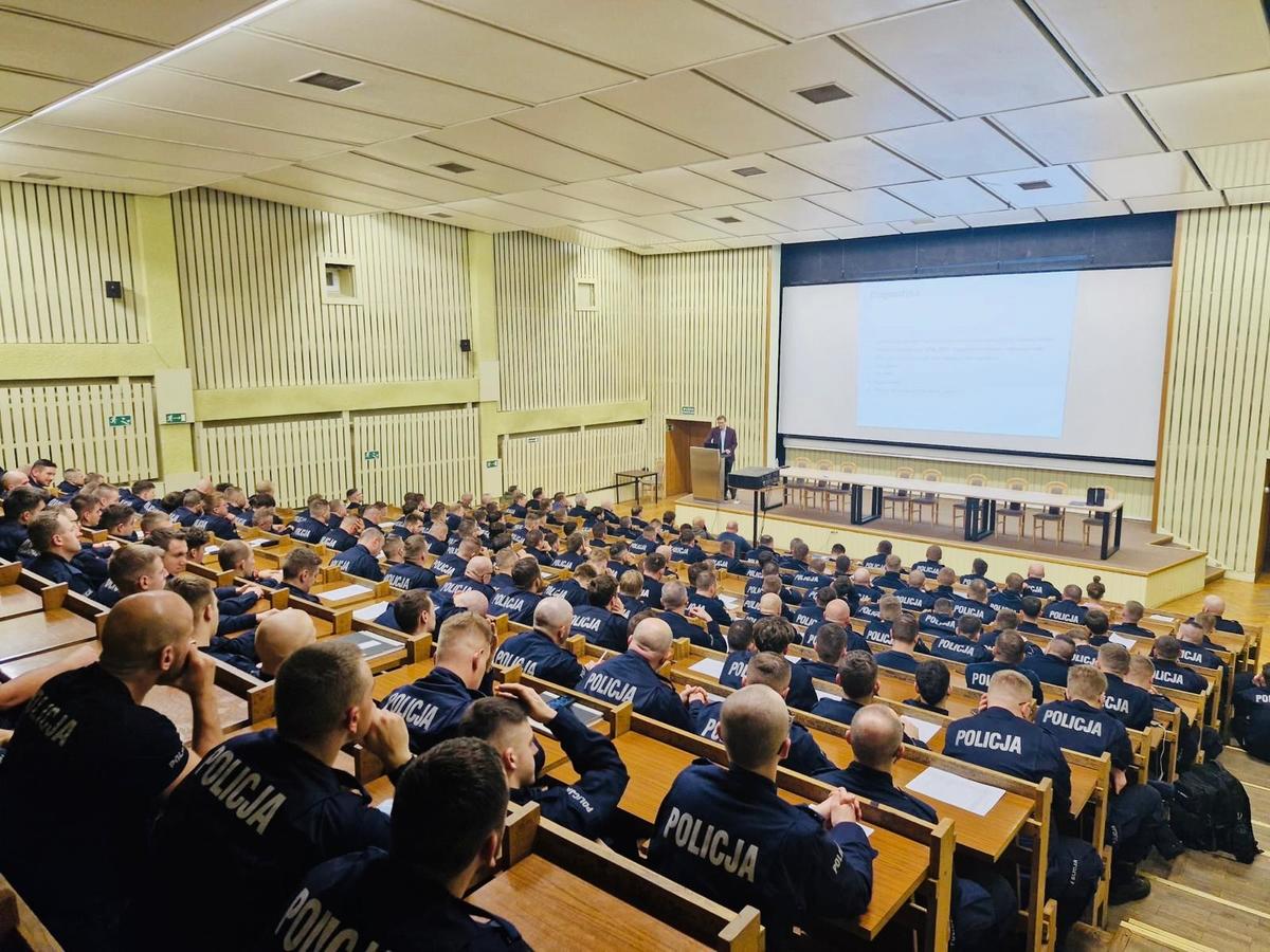 Wykład dr. n. med. Michała Małka w auli Centrum Szkolenia Policji w Legionowie