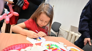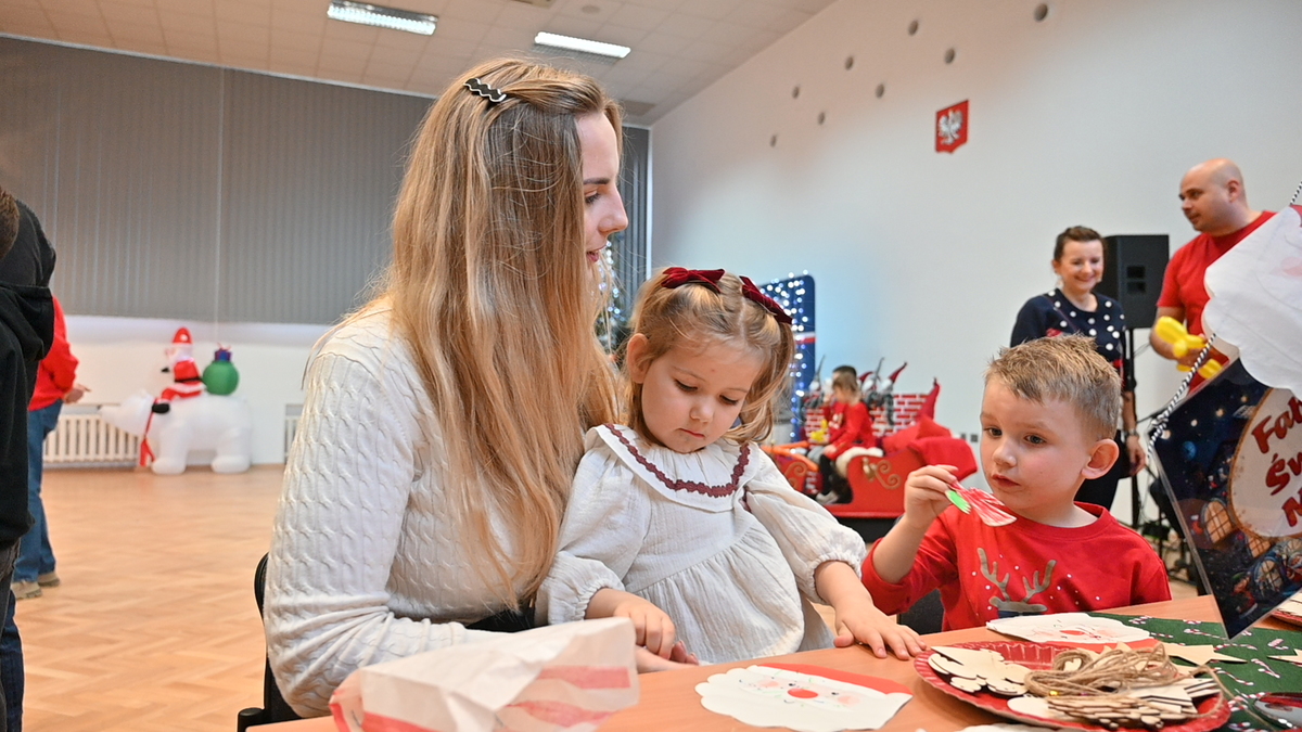 Na dzieci czekał bogaty program atrakcji. Nie zabrakło wspólnych zabaw oraz kolędowania. Dzieci dekorowały drewniane zawieszki i pierniki, korzystały z kącika wodnych tatuaży oraz stanowiska do plecenia warkoczyków. Rozdawano kolorowe balony, a mali artyści mogli wykazać się talentem plastycznym, kolorując trzymetrowy arkusz z motywami świątecznymi. Ogromnym zainteresowaniem cieszyły się małe samochody policyjne oraz motocykl. Na przygotowanej ścianie fotograficznej można było wykonać pamiątkowe zdjęcie.