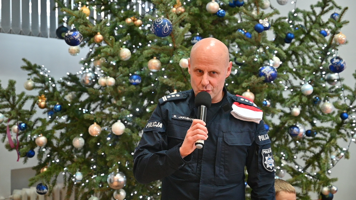 Dziękujemy Świętemu Mikołajowi, w którego rolę wcielił się Andrzej Bogdański z Sekcji Ochrony Pracy, a także jego pomocnicom – mł. asp. Agnieszce Malmon oraz Joannie Łaszyn z Wydziału Prezydialnego. Nad bezpieczeństwem Świętego Mikołaja czuwali funkcjonariusze z Zakładu Interwencji Policyjnych: asp. Marcin Parol oraz mł. asp. Piotr Radzikowski, którym dziękujemy za profesjonalną ochronę.
