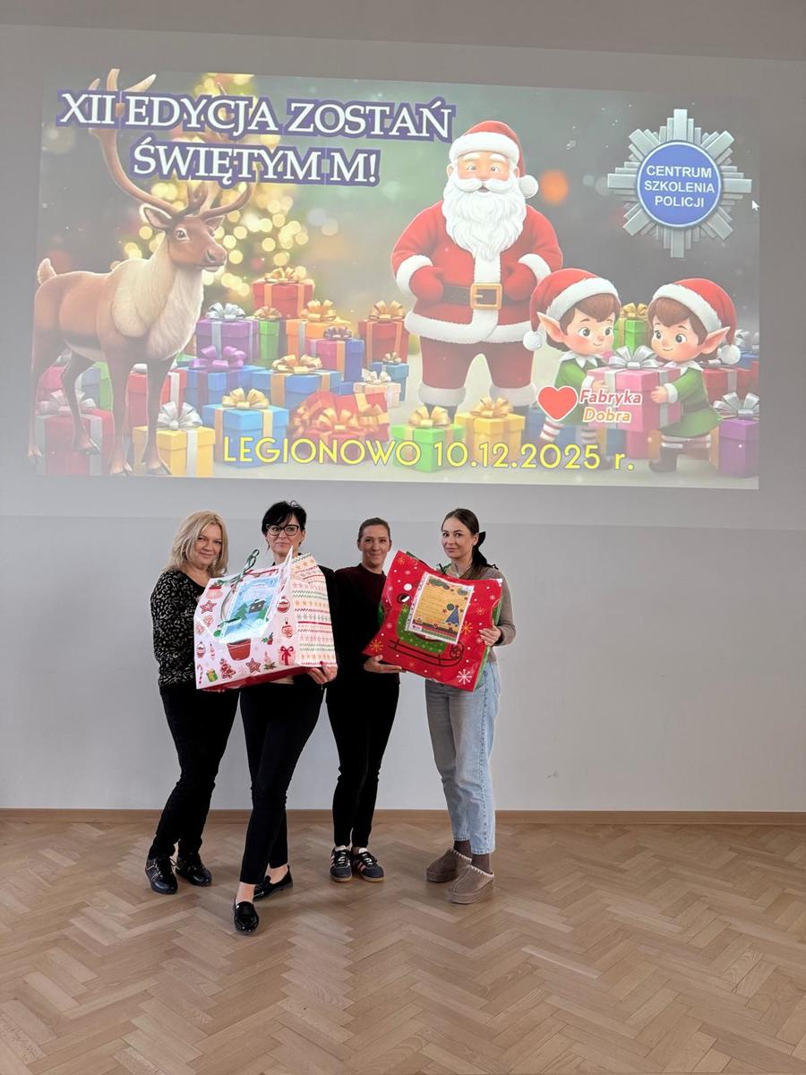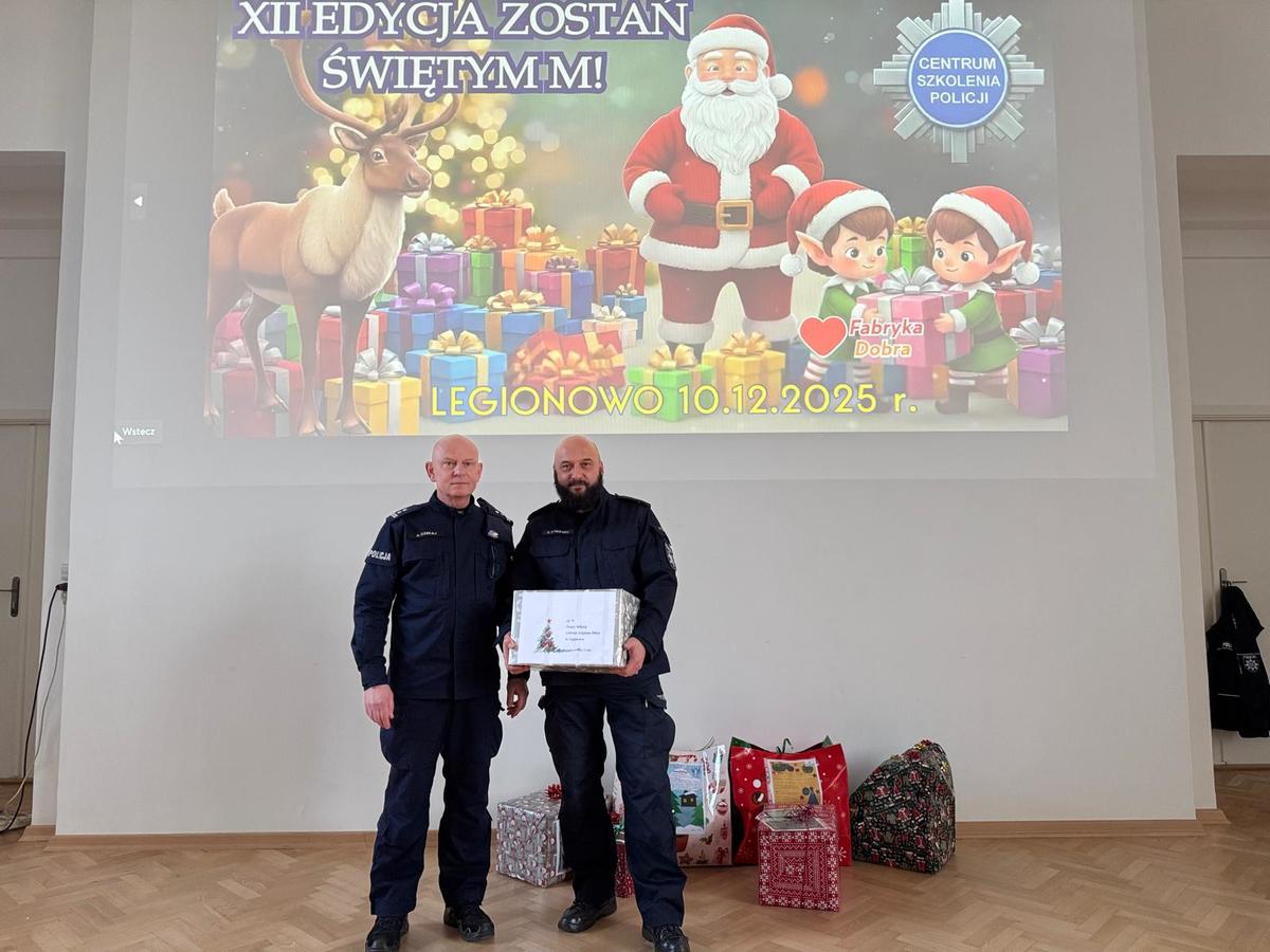 To już kolejna edycja akcji „Zostań Świętym M”, w którą z ogromnym zaangażowaniem włączyli się funkcjonariusze, pracownicy cywilni oraz słuchacze Centrum Szkolenia Policji w Legionowie. W tym wyjątkowym, świątecznym czasie choć w małym stopniu przyczyniliśmy się do tego, że prezenty o których marzyli podopieczni kilku placówek w Polsce, dotarły do nich jeszcze przed świętami aby w wigilię wywołać radość i uśmiech na twarzach.