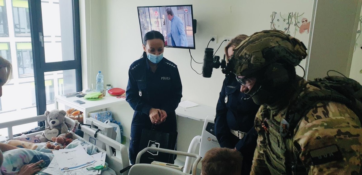 Policjanci z Zakładu Ruchu Drogowego CSP w Legionowie: asp. szt. Beata Spinek, asp. Katarzyna Stępień, asp. Cezary Grabowski oraz podkom. Piotr Jezierski, wspólnie z druhami OSP Kobyłka i funkcjonariuszami „BOA”, w porozumieniu z personelem medycznym, odwiedzili dzieci bezpośrednio na oddziałach. Podczas spotkań mundurowi rozmawiali z najmłodszymi o podstawowych zasadach bezpieczeństwa oraz przypomnieli o numerze alarmowym 112.