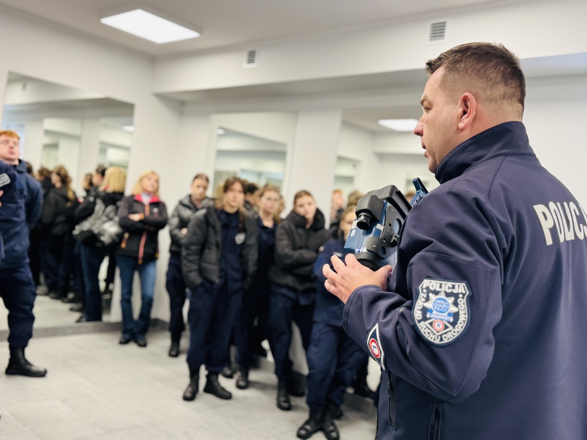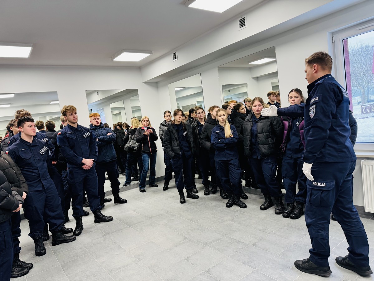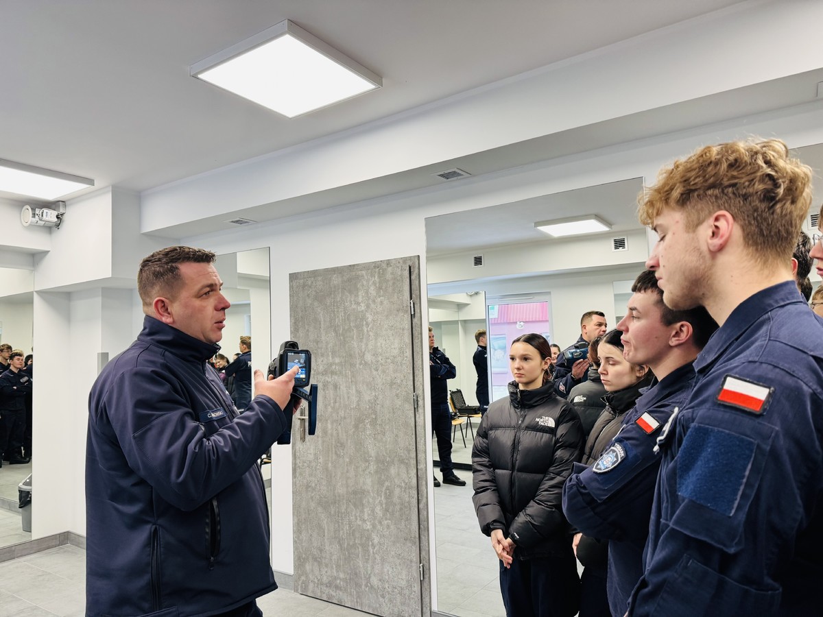 Następnie młodzież zwiedziła obiekty Zakładu Interwencji Policyjnych. Z halą taktyk i technik interwencji zapoznał uczniów mł. asp. Łukasz Mazurkiewicz, przybliżając zagadnienia związane z przygotowaniem fizycznym i taktycznym funkcjonariuszy Policji. Z kolei zasady funkcjonowania nowoczesnego zespołu strzelnic oraz podstawy wyszkolenia strzeleckiego omówił asp. Rafał Piotrowski, zwracając szczególną uwagę na kwestie bezpieczeństwa i odpowiedzialności.
