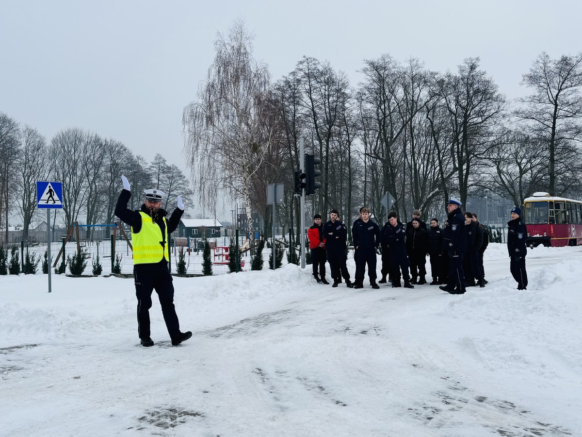 Pierwszym punktem programu było zapoznanie uczniów z działalnością Zakładu Ruchu Drogowego. Policjanci: asp. szt. Beata Spinek, asp. Cezary Grabowski, podkom. Marcin Gąsior oraz podkom. Piotr Jezierski przybliżyli młodzieży zadania wykonywane przez funkcjonariuszy ruchu drogowego oraz zaprezentowali sprzęt wykorzystywany w codziennej służbie. Uczniowie uczestniczyli także w pokazie przeprowadzonym w sali luster oraz na skrzyżowaniu znajdującym się na terenie Centrum, które odzwierciedla rzeczywiste warunki drogowe.