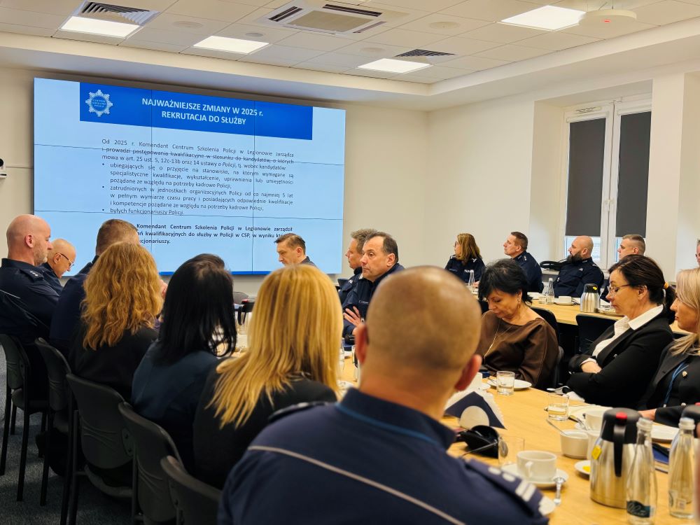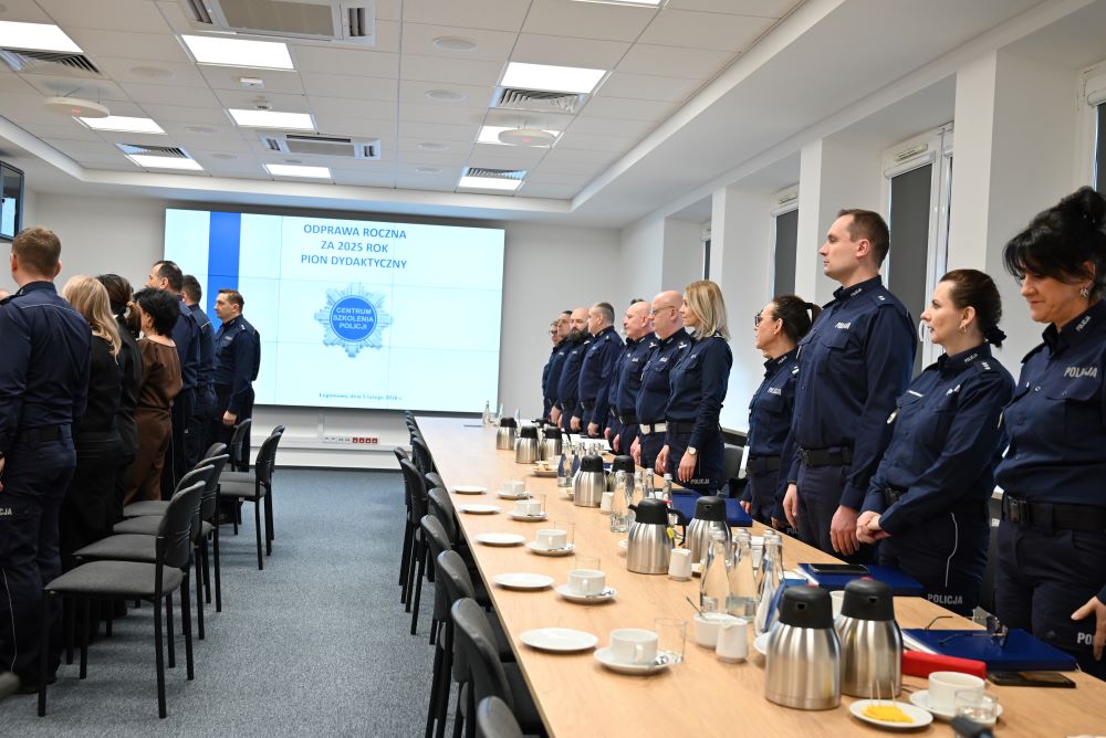 Podsumowanie działalności Centrum Szkolenia Policji w Legionowie, w tym omówienie najważniejszych szkoleń, przedsięwzięć, wydarzeń oraz inwestycji zrealizowanych w ostatnich dwunastu miesiącach, a także przedstawienie perspektyw i zamierzeń na 2026 rok, stanowiły główne tematy odprawy rocznej z udziałem kadry kierowniczej Centrum.