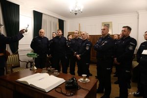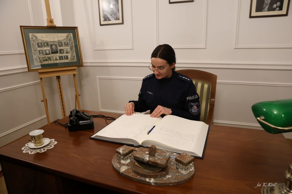 Na zakończenie wizyty nadkom. Małgorzata Gil podkreśliła znaczenie kształtowania postaw opartych na tradycji, etosie i świadomości historycznej formacji, które stanowią fundament profesjonalizmu i zaangażowania w codziennej pracy Policji.