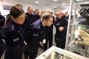 Następnie przyszli oficerowie zwiedzili budynek Komendy Głównej Policji. W programie wizyty znalazło się m.in. obejrzenie Sali Generałów Polskiej Policji oraz Sali im. Stanisławy Filipiny Paleolog. Uczestnicy zapoznali się także z funkcjonowaniem Stanowiska Kierowania KGP oraz Stanowiska Wspomagania Dowodzenia Policji Głównego Sztabu Policji KGP, co pozwoliło im lepiej zrozumieć mechanizmy zarządzania i koordynacji działań na poziomie centralnym.