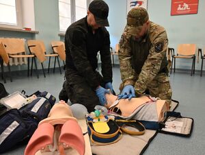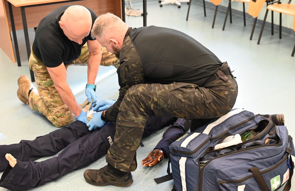 Zajęcia prowadzili: asp. szt. Krzysztof Szymański, asp. Katarzyna Bielecka oraz Mariusz Paderewski z Zakładu Szkoleń Specjalnych naszego Centrum, którzy czuwali nad wysokim poziomem merytorycznym i praktycznym realizowanych ćwiczeń. Poza służbą pracują oni jako ratownicy medyczni w zespołach ratownictwa medycznego.