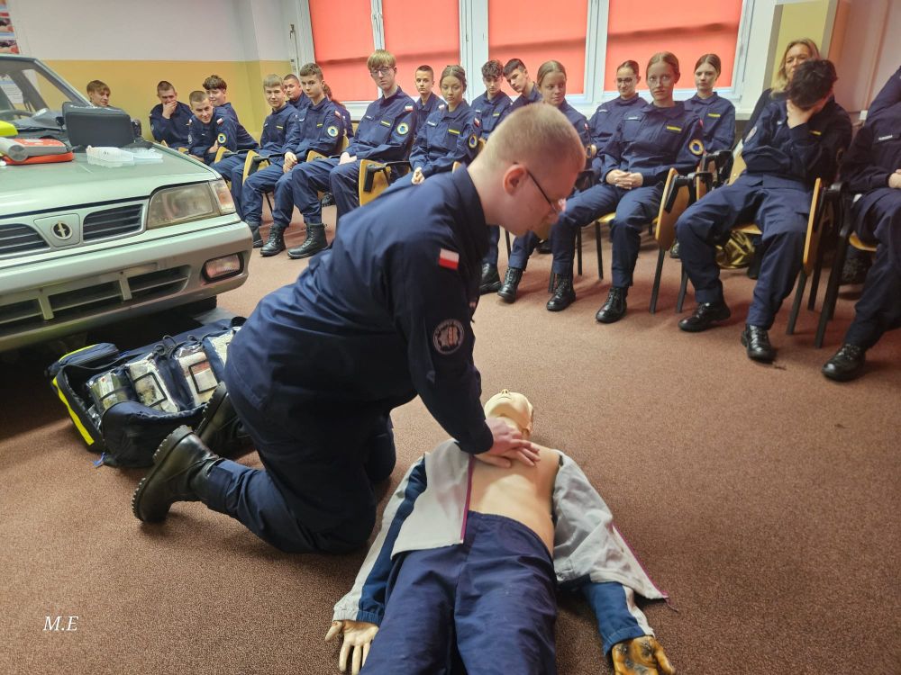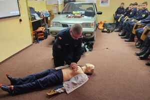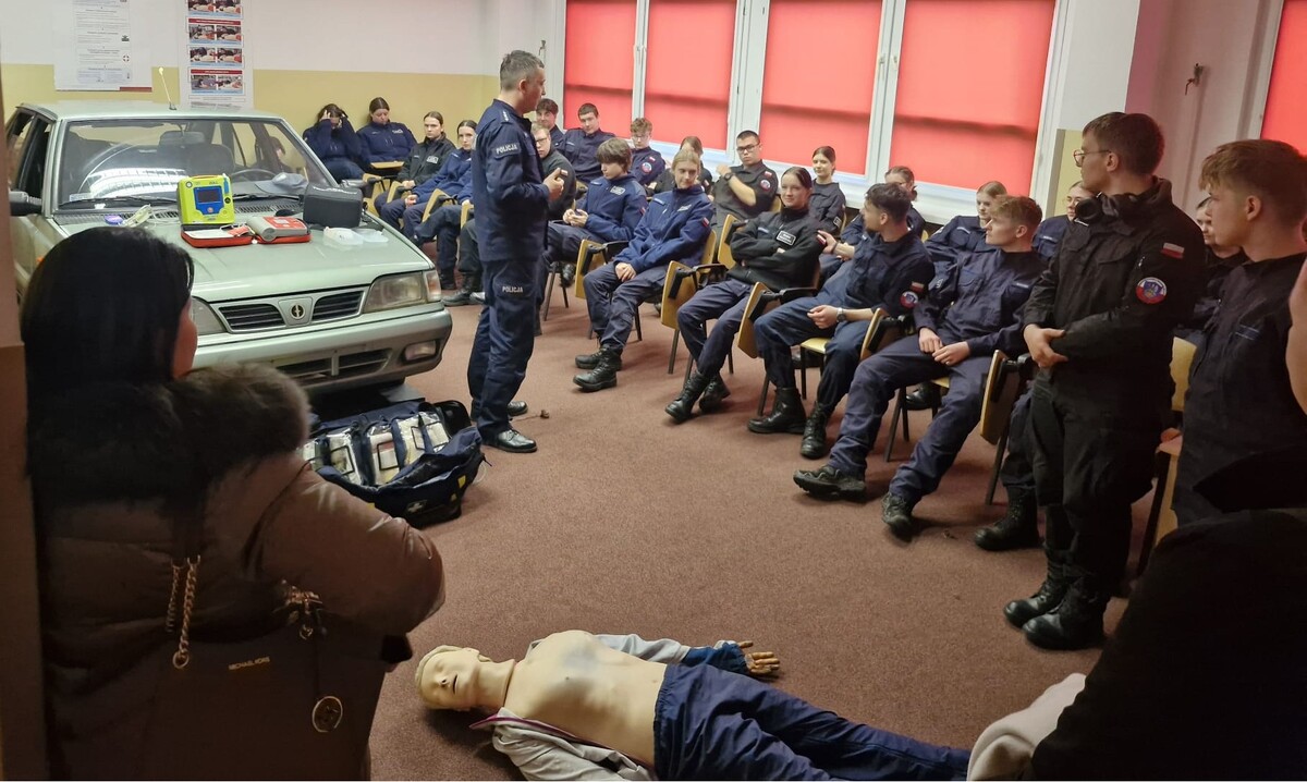 - pokaz udzielania pierwszej pomocy przedmedycznej oraz ćwiczenia z zakresu resuscytacji krążeniowo-oddechowej i użycia AED,
