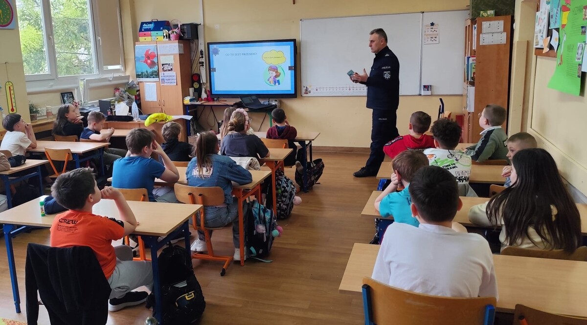 Zajęcia skierowane były do uczniów klas 1–8 i dotyczyły problematyki zachowań agresywnych wśród dzieci i młodzieży oraz konsekwencji wynikających z tego rodzaju postaw. Funkcjonariusze omówili zarówno aspekty prawne, jak i społeczne agresji, zwracając uwagę na odpowiedzialność za własne czyny oraz wpływ zachowania na relacje rówieśnicze i środowisko szkolne.