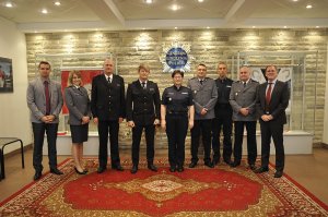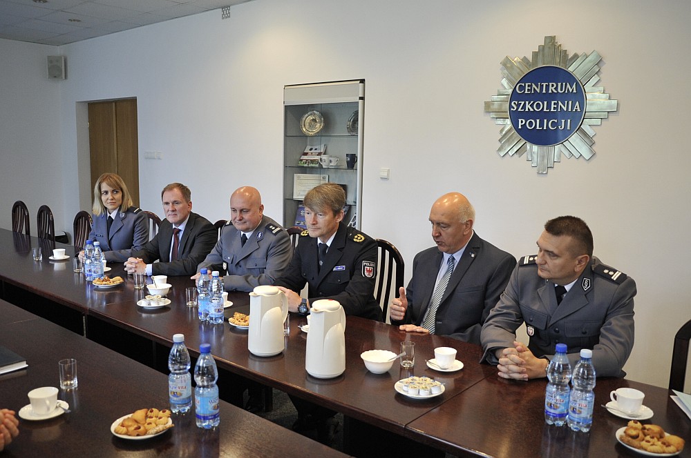 Delegację powitali: Komendant Centrum Szkolenia Policji insp. Anna Rosół oraz mł. insp. Paweł Dudkowski, radca Wydziału Prezydialnego. Pani Komendant zapoznała gości z organizacją i funkcjonowaniem CSP oraz ofertą szkoleniową jednostki, a także przybliżyła specyfikę zadań związanych z realizacją procesu dydaktycznego. Omówiła również szereg zagadnień związanych z systemem szkolenia i doskonalenia zawodowego polskiej Policji. W ramach dyskusji kończącej pierwszą część spotkania, uczestnicy mieli sposobność wymienić się spostrzeżeniami, a także podzielić doświadczeniami w obszarze szkolnictwa policyjnego funkcjonującego w obu krajach.