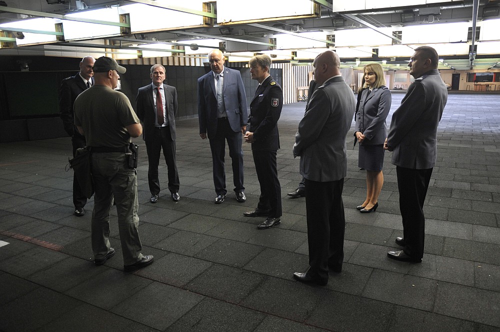 W kolejnej części wizyty nasi goście odwiedzili Zespół Strzelnic Centrum Szkolenia Policji, którego prezentacji dokonali funkcjonariusze Zakładu Interwencji Policyjnych. Członkowie delegacji byli pod dużym wrażeniem nowoczesnej infrastruktury obiektu, który umożliwia zapewnienie najwyższego poziomu kształcenia w zakresie wyszkolenia strzeleckiego, a co za tym idzie – przygotowanie policjantów do zgodnego z prawem i skutecznego użycia broni palnej.