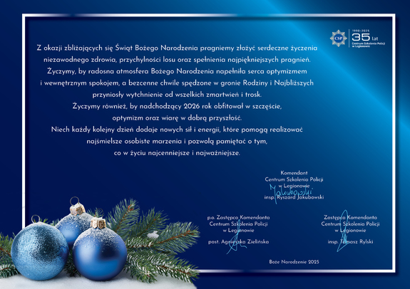 Życzenia Bożonarodzeniowe od kierownictwa Centrum Szkolenia Policji w Legionowie