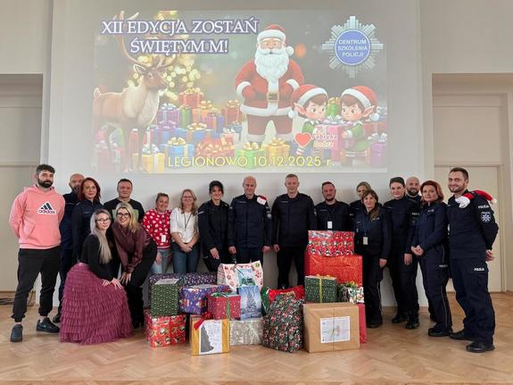To już kolejna edycja akcji „Zostań Świętym M”, w którą z ogromnym zaangażowaniem włączyli się funkcjonariusze, pracownicy cywilni oraz słuchacze Centrum Szkolenia Policji w Legionowie. W tym wyjątkowym, świątecznym czasie choć w małym stopniu przyczyniliśmy się do tego, że prezenty o których marzyli podopieczni kilku placówek w Polsce, dotarły do nich jeszcze przed świętami aby w wigilię wywołać radość i uśmiech na twarzach.