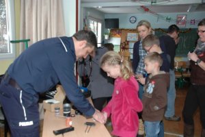 Oprócz aukcji zorganizowaliśmy ćwiczenia z zakresu udzielania pierwszej pomocy, można było też wziąć udział w odwzorowywaniu śladów linii papilarnych. Najmłodsze dzieci uczestniczyły w grach i zabawach z wykorzystaniem wyposażenia samochodu specjalistycznego typu furgon przeznaczonego do działań profilaktyczno – edukacyjnych.