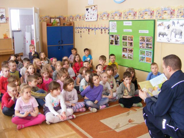 Wizyta miała charakter edukacyjno – profilaktyczny i odbyła się w ramach ogólnopolskiej kampanii „Cała Polska Czyta Dzieciom”. Policjant spotkał się z przedszkolakami, którym przeczytał opowiadania o „Dzielnym szewczyku” oraz „ Drodze do przedszkola”. Młodzi czytelnicy z ogromną uwagą i zainteresowaniem słuchali policjanta. Dodatkowo w trakcie spotkań omówione zostały zasady bezpieczeństwa podczas przypadkowych spotkań z nieznajomymi osobami oraz kontaktu z agresywnymi psami.
