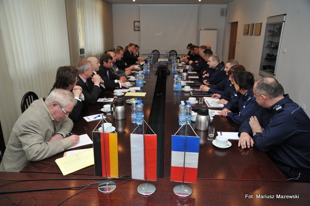 Przedstawiciele Stowarzyszenia „Arbeit Und Leben” Rostock, Związków Zawodowych Policji Mecklenburg-Vorpmern, Wyższej Szkoły Zawodowej dla Pracowników Administracji Publicznej, Policji oraz Wymiaru Sprawiedliwości w Güstrow, Stowarzyszenia „Leo Lagrange” oraz Szkoły Policji w Nimes (Francja) uczestniczą w Trójstronnym Spotkaniu Przygotowawczym, zorganizowanym w Centrum Szkolenia Policji.