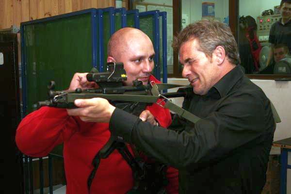 Miły, ujmujący aktor czuł się wśród policjantów jak ryba w wodzie. Z zainteresowaniem przyglądał się życiu naszej szkoły. Gratulując słuchaczom wyników stwierdził, że Adam trafia nawet z 50 metrów w cel... ale tylko na filmie. Oblegany przez słuchaczy z cierpliwością rozdawał autografy i pozował do zdjęć, bo każdy chciał mieć z nim fotkę. Nagrody za zwycięstwo wręczał w towarzystwie naszych komendantów, których również ujął swoją skromnością i urokiem.