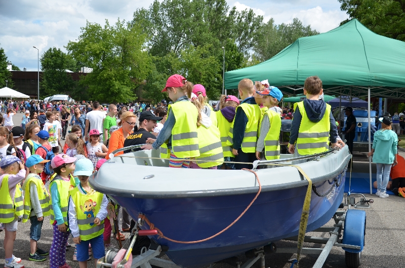 Aby poszerzyć program przedsięwzięcia zaprosiliśmy do współpracy innych partnerów. Funkcjonariusze Komendy Powiatowej Policji w Legionowie przyjechali do nas przepiękną Alfą Romeo wyposażoną w wideorejestrator. Policjanci z Komisariatu Rzecznego Policji w Warszawie prezentowali łódź służbową i przypominali o zasadach bezpiecznego wypoczynku nad wodą. Wozy bojowe Państwowej Straży Pożarnej w Legionowie były nieustannie oblegane, szczególnie przez najmłodszych uczestników przedsięwzięcia. Straż Miejska w Legionowie, organizując stoisko, zadbała o bezpieczeństwo dzieci – rozdawała kamizelki i elementy odblaskowe. Kolorowo i radośnie było przy stoiskach fundacji „Afryka Inaczej” i Fundacji „Ocalenie”. Do scenariusza dzisiejszego spotkania wpisało się także Centrum Ratownictwa Medycznego we Wrocławiu, przygotowując dynamiczną prezentację udzielania pomocy osobie poszkodowanej w wypadku drogowym oraz Powszechny Zakład Ubezpieczeń i Automobilklub Polski, dzięki którym młodzież mogła skorzystać z symulatora dachowania. Nic bardziej nie przekonuje do korzystania z pasów bezpieczeństwa, jak przeżycia i doznania, które zapewnia to specjalistyczne urządzenie. Przedstawiciele Wydawnictwa Grupa „Image” przyjechali do CSP z alkogoglami. Chętnych do skorzystania z tego urządzenia nie brakowało.
