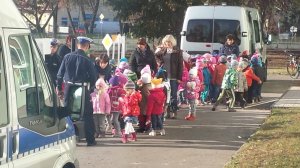 Podczas spotkań zwracano także uwagę na zasady bezpiecznego przewożenia dzieci w pojazdach, znaczenie znaków i sygnałów drogowych oraz gestów podawanych przez policjantów podczas kierowania ruchem drogowym. Funkcjonariusze wskazywali sposoby zachowania się w sytuacjach niecodziennych, takich jak zdarzenia drogowe, przypominali numery telefonów alarmowych, pod którymi uzyskamy pomoc. Zaprezentowano też elementy umundurowania i wyposażenia służbowego Policji. Dużym zainteresowaniem cieszyły się motocykle, wideorejestratory i pojazd przeznaczony do działań profilaktyczno – edukacyjnych. W spotkaniach udział wzięło około 1500 dzieci.