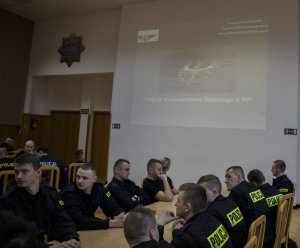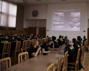 Młodzi funkcjonariusze z wielką uwagą i zainteresowaniem przysłuchiwali się wykładowi. Jesteśmy przekonani, że udział w tym wartościowym przedsięwzięciu edukacyjnym nie tylko wzbogacił ich wiedzę historyczną, ale również przyczyni się do budowania tożsamości środowiska policyjnego.