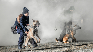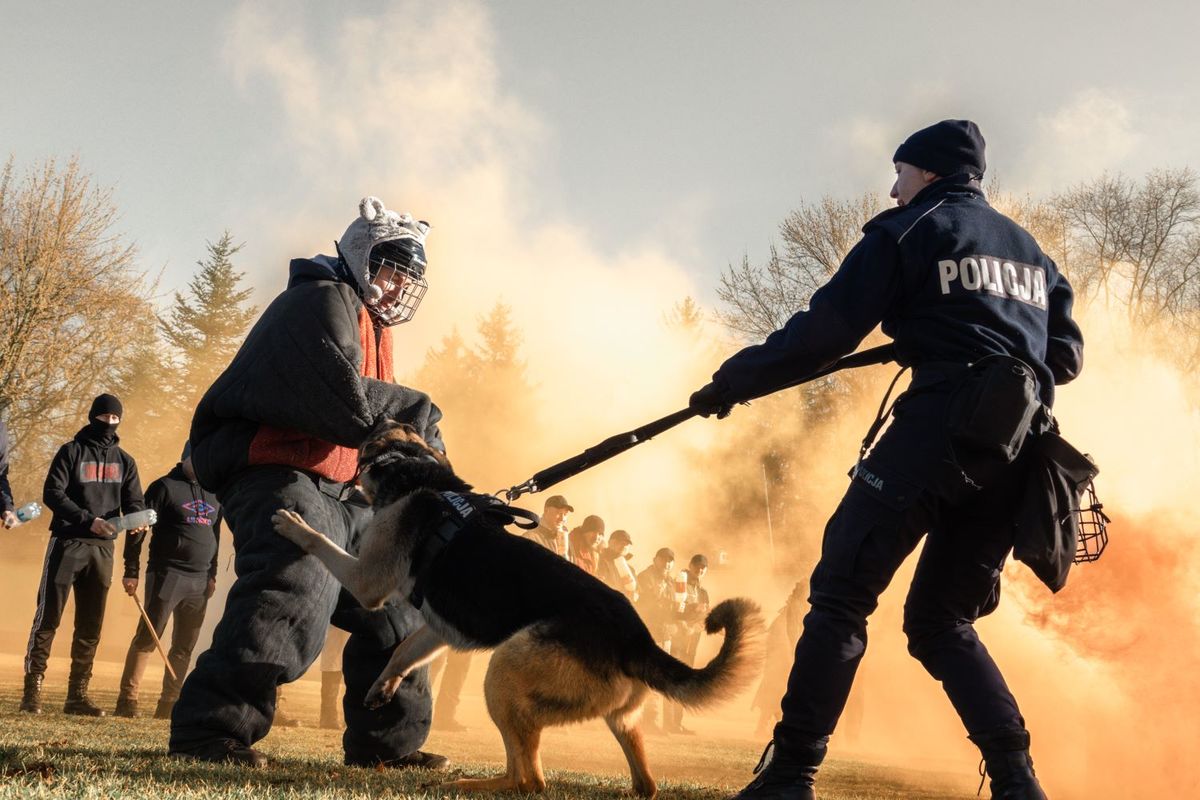 i dźwiękowych. Wszystko to po by realnie odwzorować warunki jakie w przyszłości przewodnicy psów służbowych mogą napotkać w jednostkach terenowych podczas realizacji zadań związanych z ochroną porządku lub bezpieczeństwa publicznego w trakcie zabezpieczania imprez masowych i zgromadzeń.