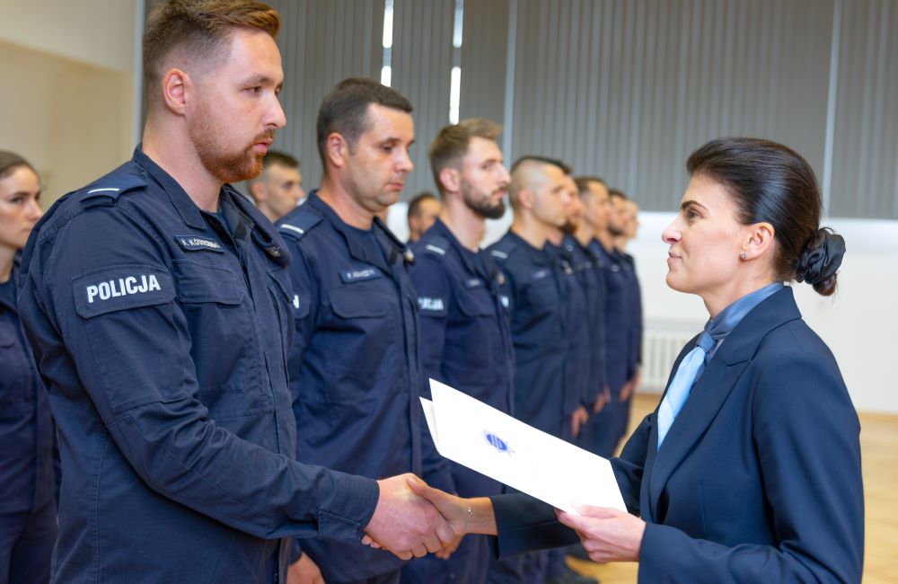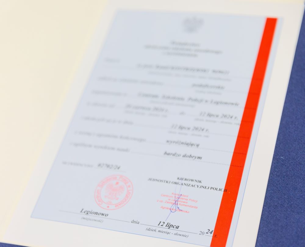 W ostatnim dniu szkolenia w Centrum Szkolenia Policji w Legionowie policjanci przystąpili do egzaminu końcowego i otrzymali świadectwo ukończenia szkolenia zawodowego podoficerskiego, które potwierdza uzyskanie kwalifikacji zawodowych. Aż 44 spośród 48 przystępujących zdało go wyróżniająco. Świadectwa zostały wręczone przez Zastępcę Komendanta Centrum Szkolenia Policji Panią Agnieszkę Zielińską.