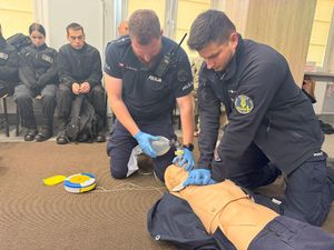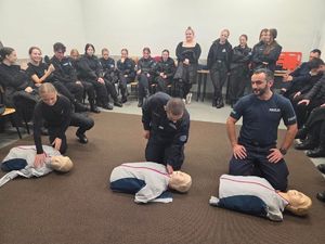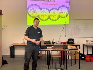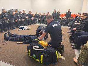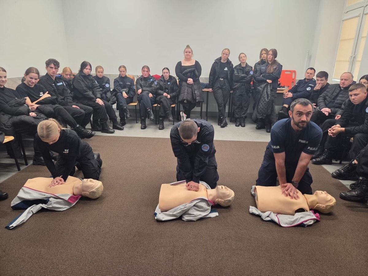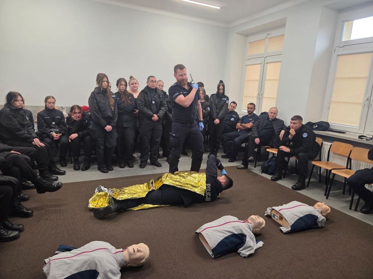 W czasie wizyty młodzież miała również możliwość poznania specjalistycznej pracowni Zakładu Szkoleń Specjalnych, gdzie specjalnie dla nich odbył się pokaz pierwszej pomocy przedmedycznej w wykonaniu ratownika medycznego Mariusza Paderewskiego.