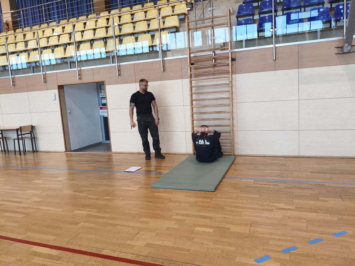 Na hali sportowej natomiast uczniowie mogli przystąpić do testu sprawności fizycznej, pokonując tor przeszkód taki sam, jaki osoby ubiegające się o przyjęcie do służby w Policji. Szczegółowego instruktażu młodzieży udzielił mł. asp. Łukasz Mazurkiewicz.