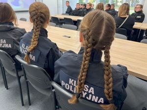 Przygotowaliśmy dla uczniów bogaty i różnorodny program wizyty. Dzień zaczęliśmy od powitania oraz zaprezentowaliśmy film o naszej szkole. Uczniom z okazji jubileuszu 100-lecia kobiet w Policji przypadającego w 2025 roku, st. asp. Marta Musiał oraz mł. asp. Agnieszka Malmon przedstawiły sylwetkę Stanisławy Filipiny Paleolog – I Komendant Policji Kobiecej w Polsce, nawiązując również do wybranych wątków historii polskiej Policji.