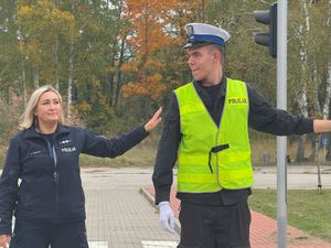 Policjanci z Zakładu Ruchu Drogowego podinsp. Dariusz Szymanik, asp. szt. Andrzej Słupecki, asp. Katarzyna Stępień oraz asp. Remigiusz Skrzypiński opowiedzieli o zadaniach służbowych wykonywanych przez policjantów ruchu drogowego oraz wykorzystywanym do tego sprzęcie służbowym. Funkcjonariusze w białych czapkach przeprowadzili pokaz w sali luster oraz na skrzyżowaniu znajdującym się na terenie naszego Centrum, które odzwierciedla warunki rzeczywiste na drodze.