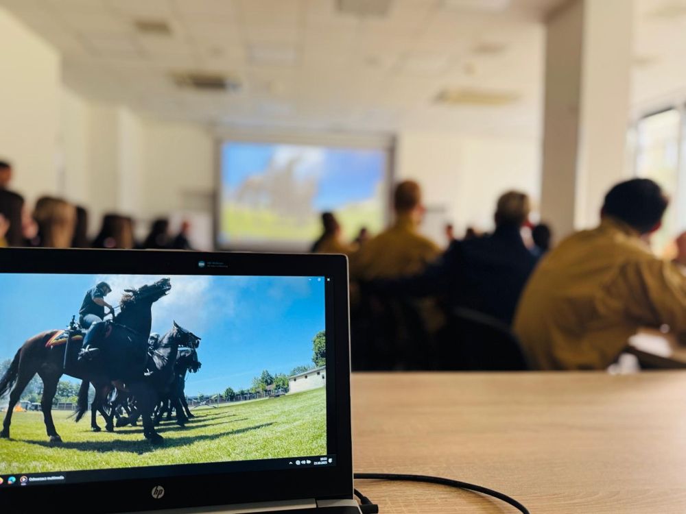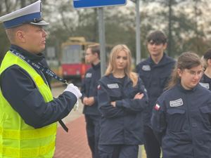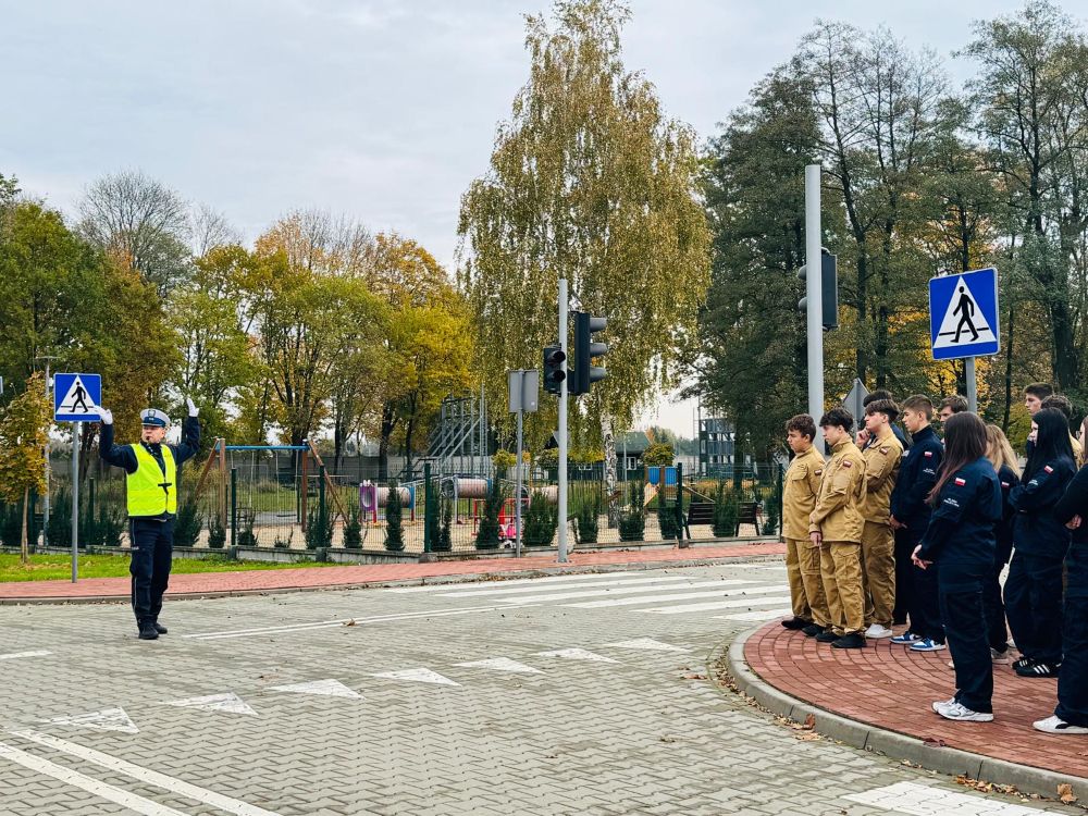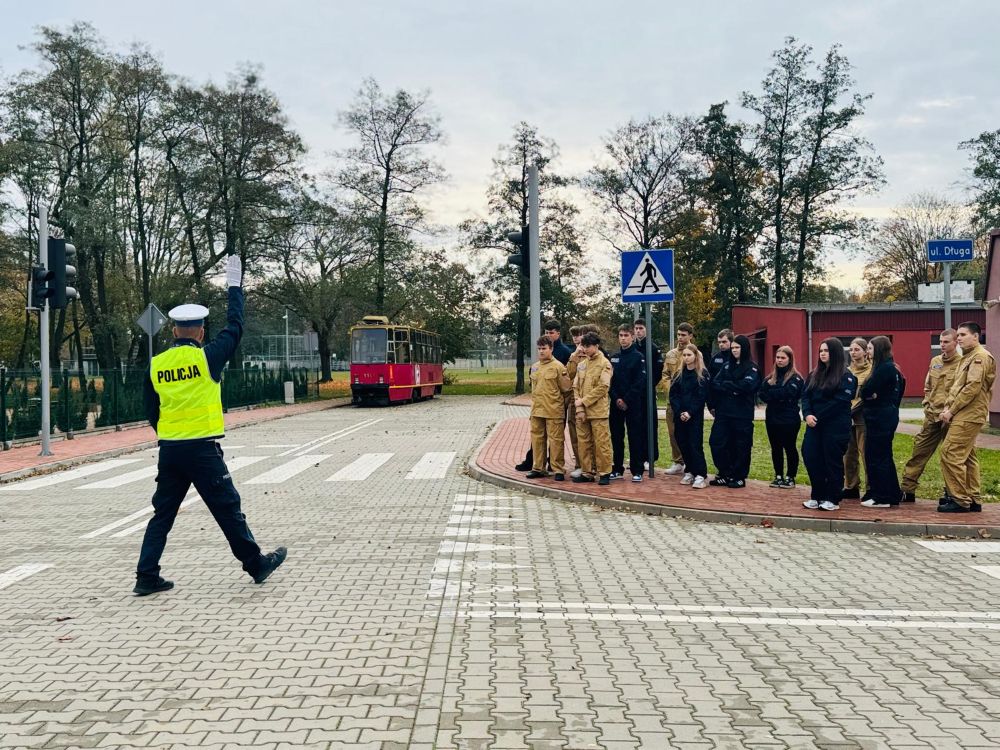 Podkom. Marcin Gąsior z Zakładu Ruchu Drogowego naszej szkoły przeprowadził pokaz kierowania ruchem drogowym w sali luster oraz na skrzyżowaniu znajdującym się na terenie naszego Centrum, które odzwierciedla warunki rzeczywiste na drodze.