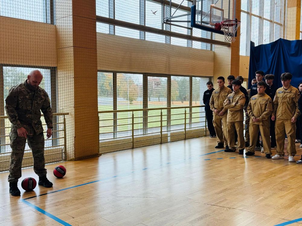 Na hali sportowej uczniowie mogli przystąpić do testu sprawności fizycznej, pokonując tor przeszkód taki sam, jaki osoby ubiegające się o przyjęcie do służby w Policji. Szczegółowego instruktażu młodzieży udzielił mł. asp. Krystian Chudziński z Zakładu Interwencji Policyjnych.
