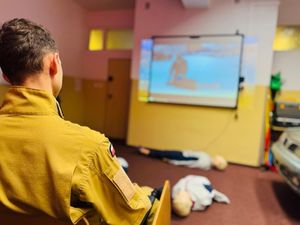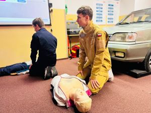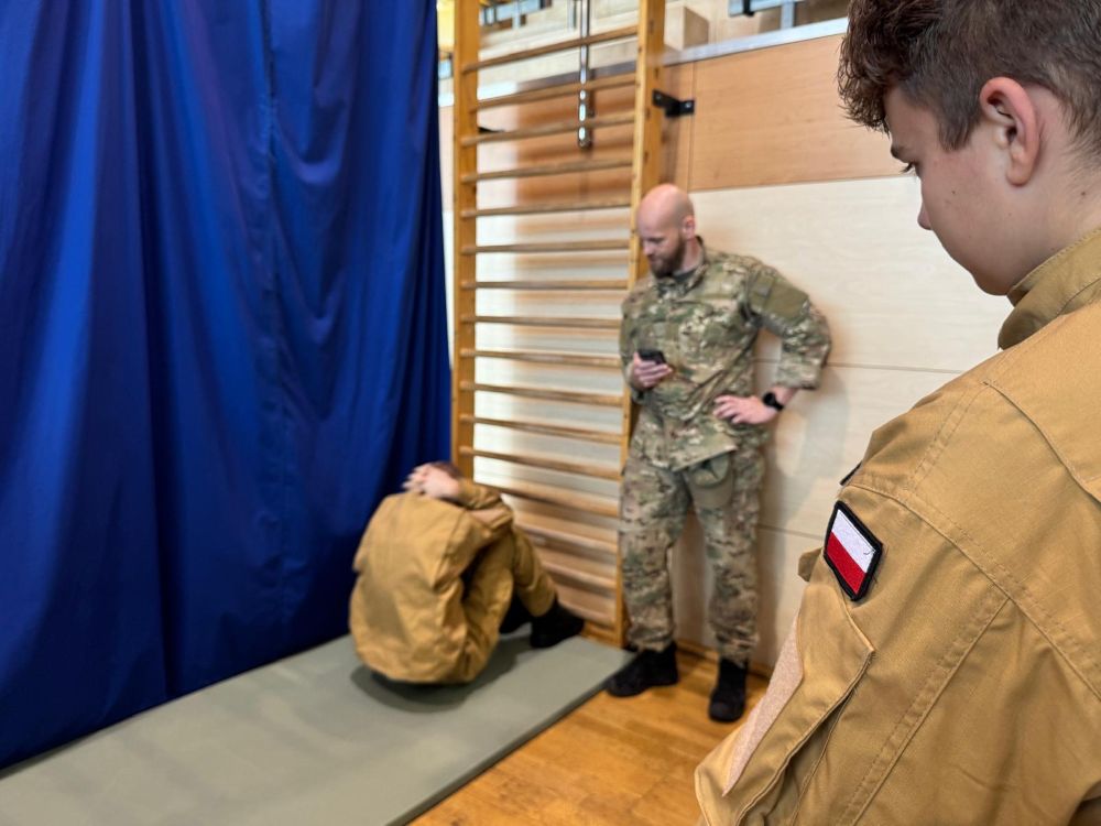 W czasie wizyty młodzież miała możliwość poznania specjalistycznej pracowni Zakładu Szkoleń Specjalnych, gdzie specjalnie dla nich odbył się pokaz pierwszej pomocy przedmedycznej w wykonaniu ratownika medycznego Mariusza Padarewskiego.