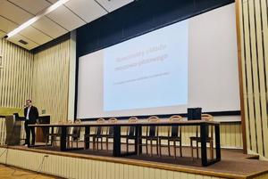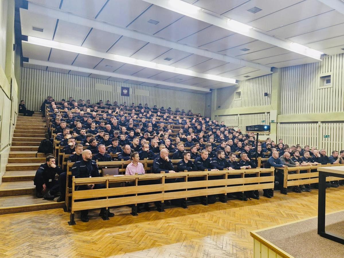 Wykład dr. n. med. Michała Małka w auli Centrum Szkolenia Policji w Legionowie