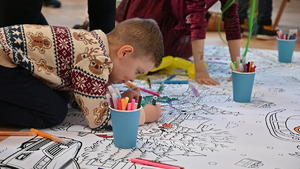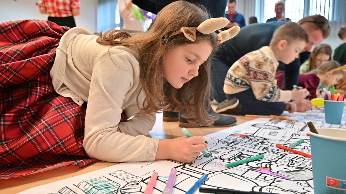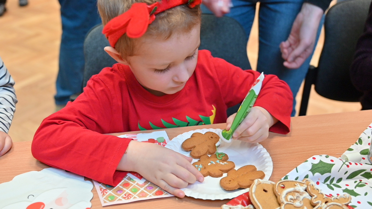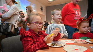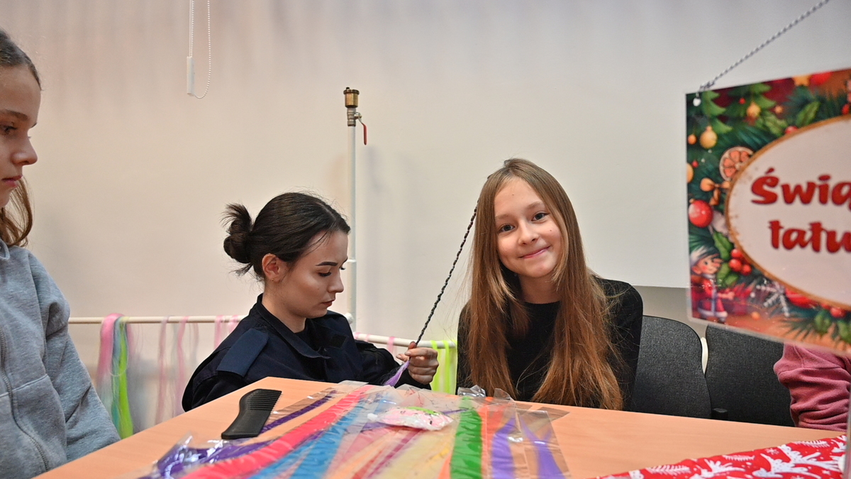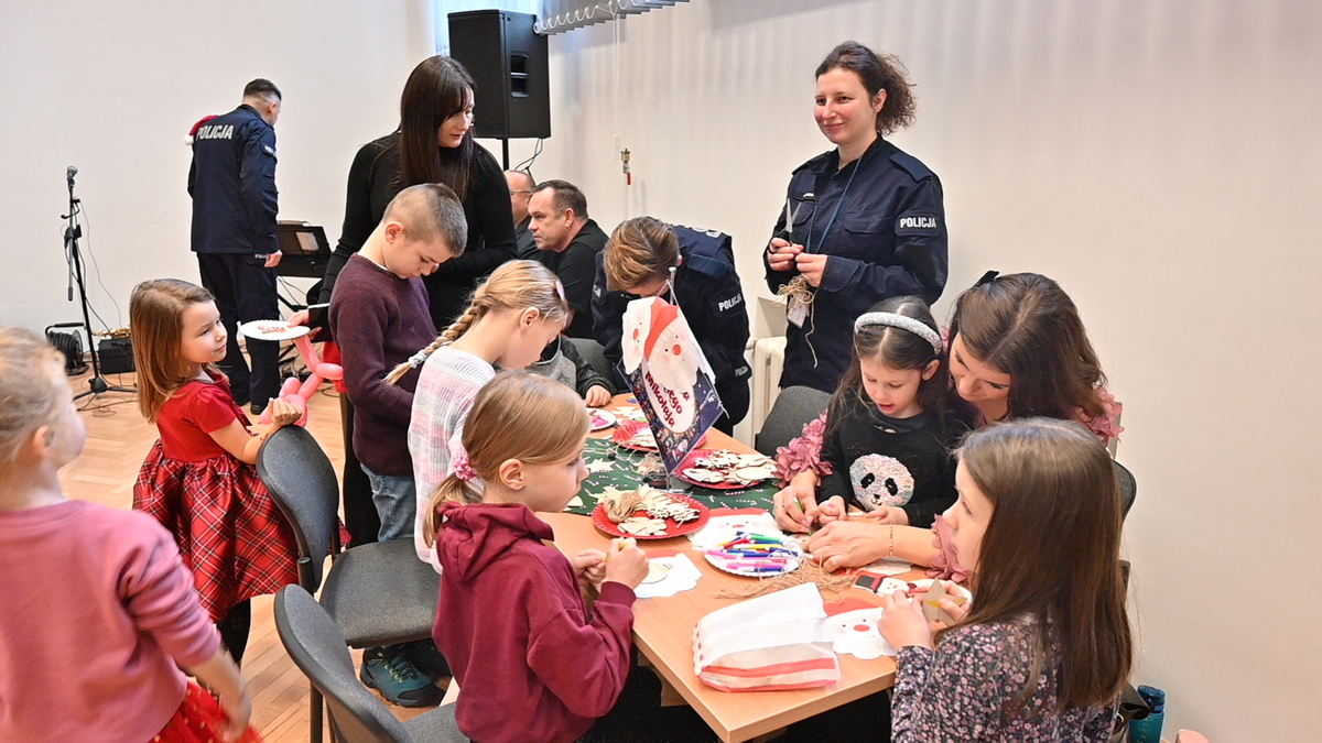 Na dzieci czekał bogaty program atrakcji. Nie zabrakło wspólnych zabaw oraz kolędowania. Dzieci dekorowały drewniane zawieszki i pierniki, korzystały z kącika wodnych tatuaży oraz stanowiska do plecenia warkoczyków. Rozdawano kolorowe balony, a mali artyści mogli wykazać się talentem plastycznym, kolorując trzymetrowy arkusz z motywami świątecznymi. Ogromnym zainteresowaniem cieszyły się małe samochody policyjne oraz motocykl. Na przygotowanej ścianie fotograficznej można było wykonać pamiątkowe zdjęcie.