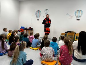 Istotnym elementem spotkania była również rozmowa na temat pierwszej pomocy. Zaprezentował dzieciom podstawowe zasady udzielania pomocy oraz pokazał, jak prawidłowo wykonać resuscytację krążeniowo-oddechową. Dodatkowo przedstawił sposób postępowania w przypadku zadławienia i zakrztuszenia, co spotkało się z dużym zainteresowaniem najmłodszych. Najmłodsi z ogromnym zaangażowaniem uczestniczyli w zajęciach i mieli okazję samodzielnie spróbować wykonać resuscytację na specjalnym fantomie.