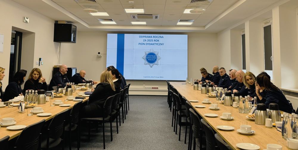 Podsumowanie działalności Centrum Szkolenia Policji w Legionowie, w tym omówienie najważniejszych szkoleń, przedsięwzięć, wydarzeń oraz inwestycji zrealizowanych w ostatnich dwunastu miesiącach, a także przedstawienie perspektyw i zamierzeń na 2026 rok, stanowiły główne tematy odprawy rocznej z udziałem kadry kierowniczej Centrum.