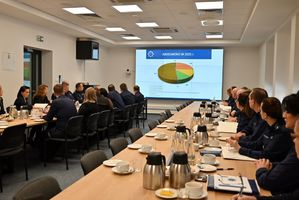 Następnie szczegółowe informacje dotyczące działalności pionu sztabowego zaprezentowali kierownicy poszczególnych komórek organizacyjnych. W swoich wystąpieniach omówili realizację zadań w minionym roku, najważniejsze przedsięwzięcia i wyzwania, a także przedstawili plany oraz priorytety działań na kolejny rok.