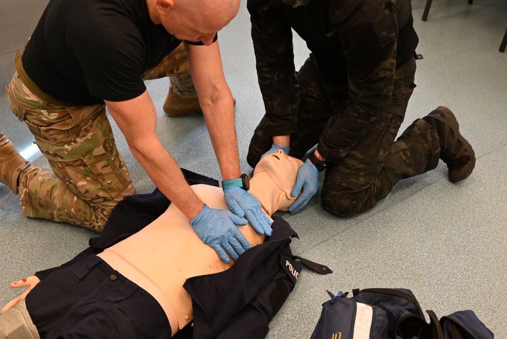 Zajęcia prowadzili: asp. szt. Krzysztof Szymański, asp. Katarzyna Bielecka oraz Mariusz Paderewski z Zakładu Szkoleń Specjalnych naszego Centrum, którzy czuwali nad wysokim poziomem merytorycznym i praktycznym realizowanych ćwiczeń. Poza służbą pracują oni jako ratownicy medyczni w zespołach ratownictwa medycznego.